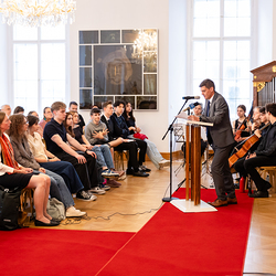 Geehrt wurden die jungen SiegerInnem und FinalistInnen der vierten Olympiade im katholischen Religionsunterricht. In Anwesenheit von Gäste aus Kirche, Wissenschaft und dem Bildungsbereich nahmen die SchülerInnen ihre Preise und Glückwünsche entgegen. Der österreichweite Wettbewerb legte heuer den Fokus auf Körper und Körperlichkeit — und damit auf eine hochaktuelle Thematik jugendlicher Lebenswelten. Wir haben die Verleihung mit der Kamera begleitet.